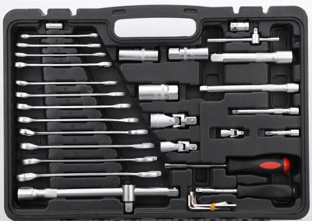 Набор укомплектован трещотками с масло- и бензостойкими двухкомпонентными рукоятками.